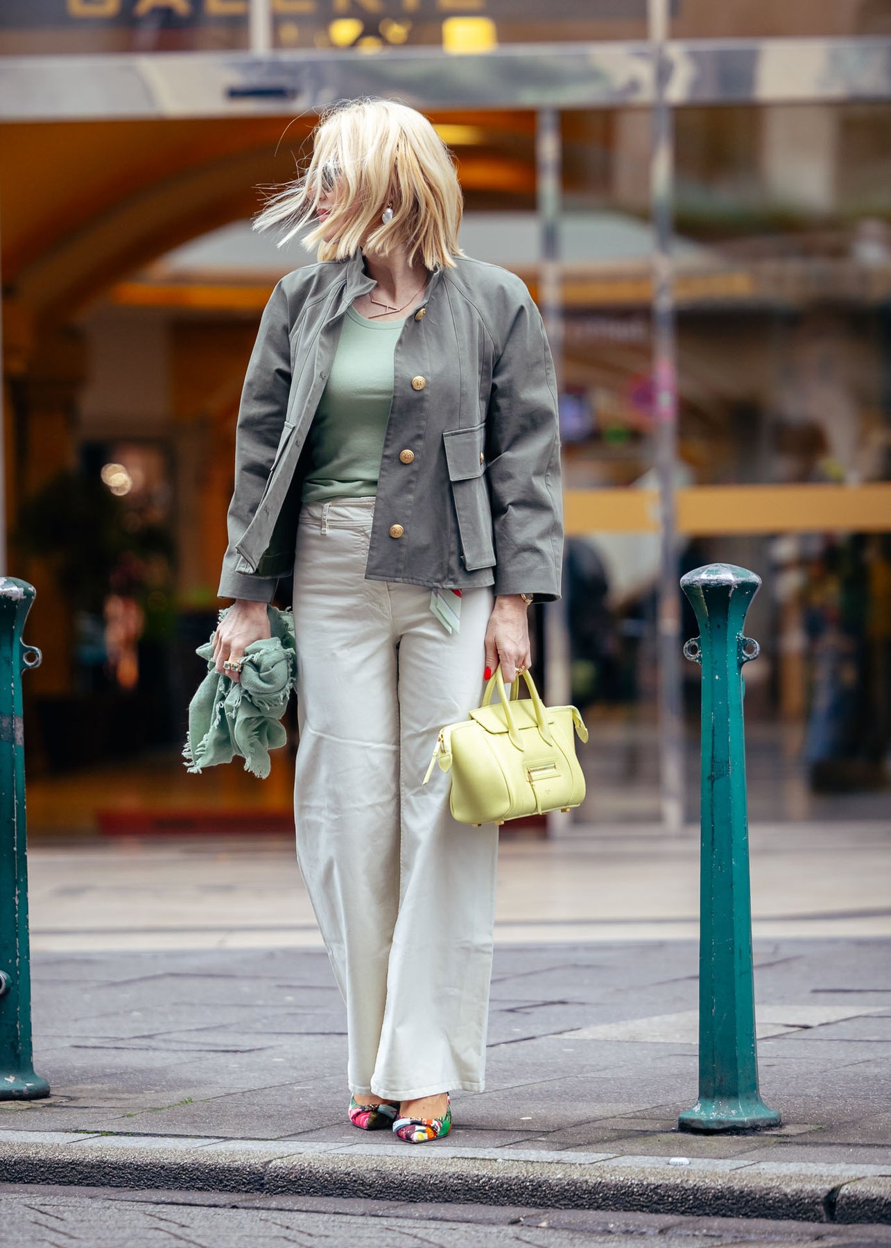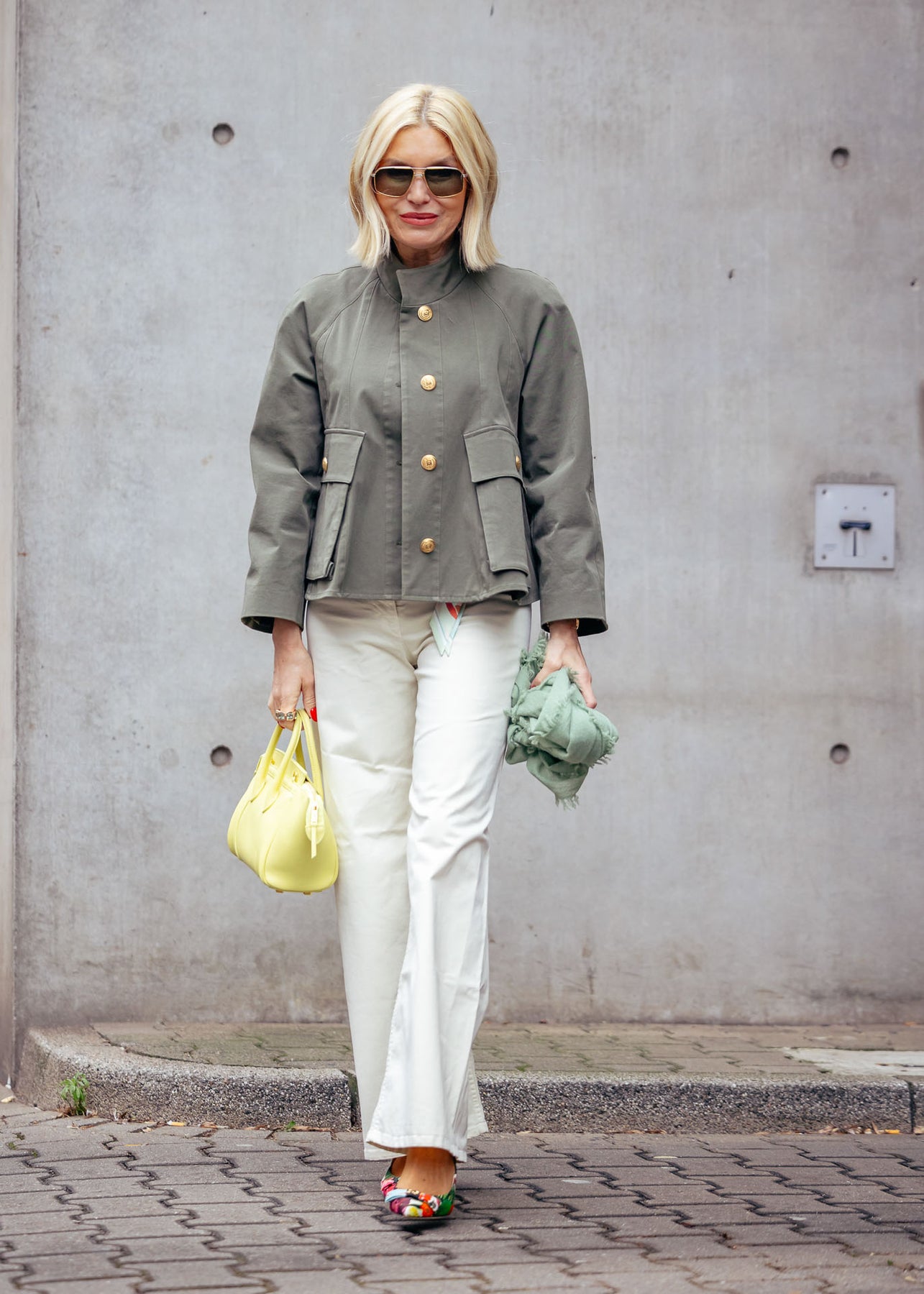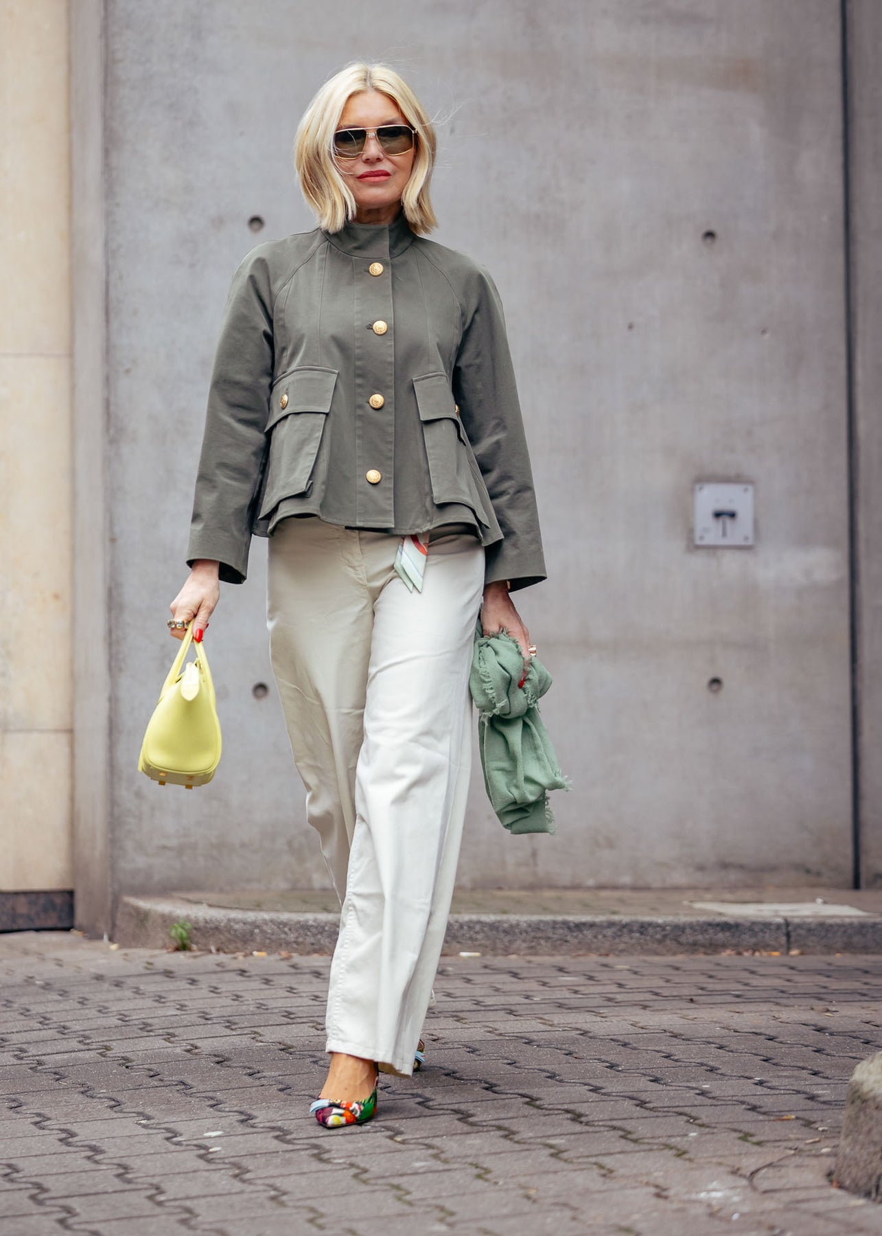 Diese Jacke in trendigem Olivgrün verbindet lässige Coolness mit eleganten Details. Goldene Knöpfe setzen edle Akzente, während der gecroppte Schnitt und die weiten Raglanärmel für eine schmeichelhafte Silhouette sorgen. Abgerundet wird das Design durch einen stilvollen Stehkragen.