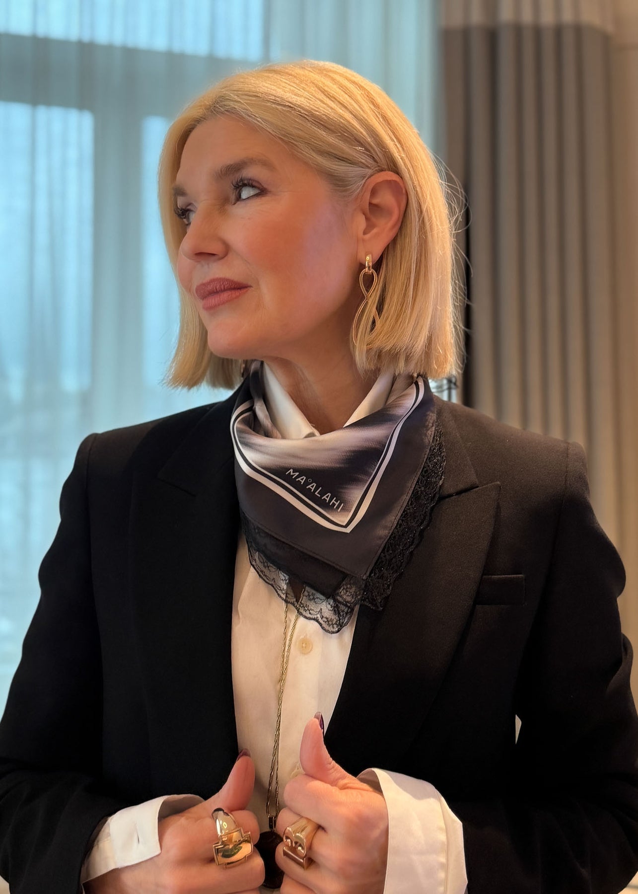 In Zusammenarbeit mit der MA’ALAHI Manufaktur entstanden Tücher, in denen Gegensätze kraftvoll miteinander verschmelzen: Stärke trifft auf Sanftheit, Mut auf Eleganz, Sinnlichkeit auf Unabhängigkeit.