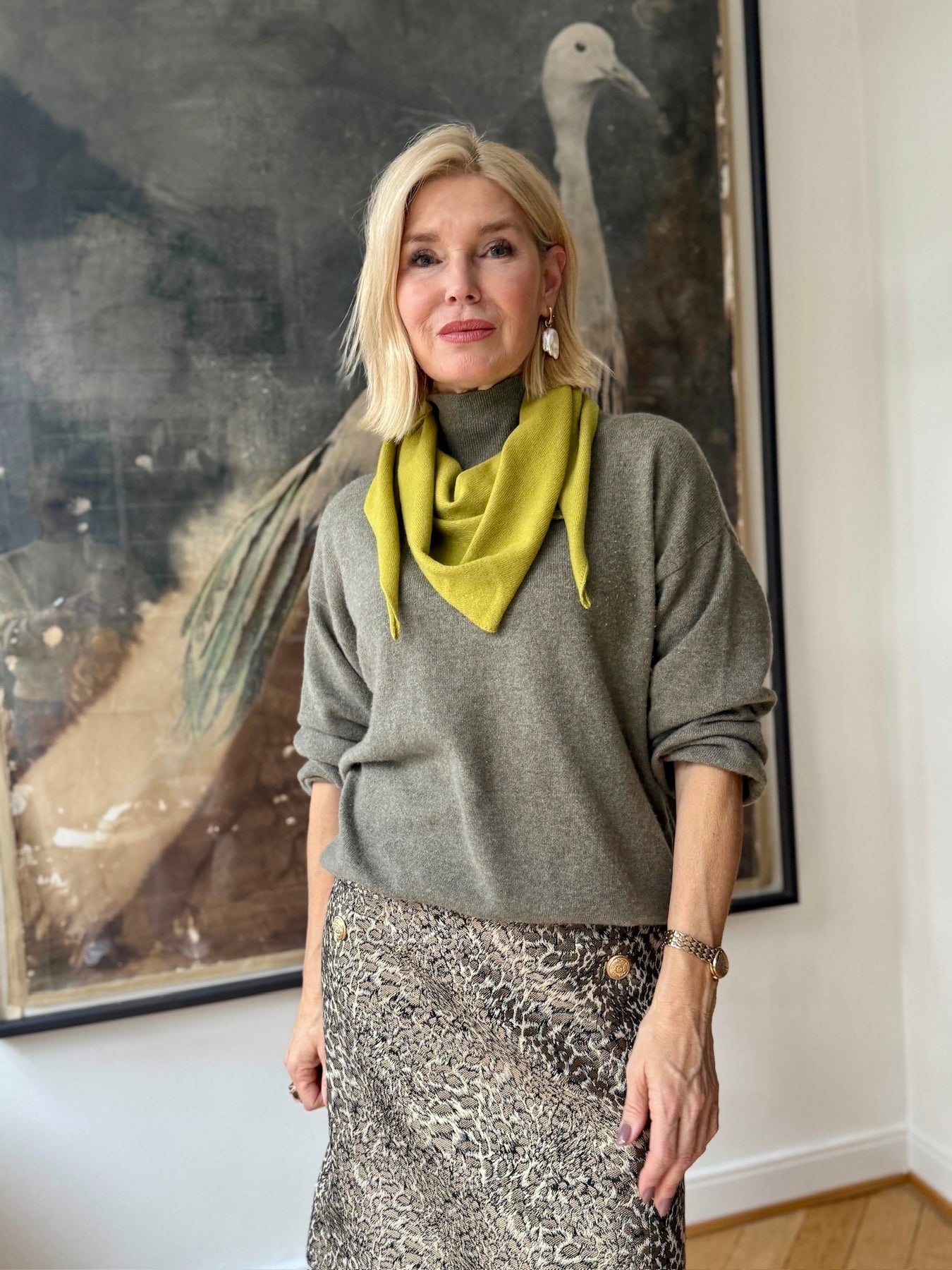 Das Halstuch aus 100 % Kaschmir ist das perfekte Accessoire für die kühle Jahreszeit. In der Trendfarbe Wasabi bringt es frische Eleganz in jedes Herbst-Winter-Outfit.
