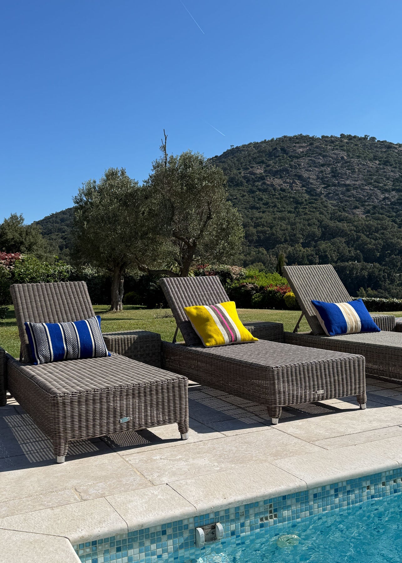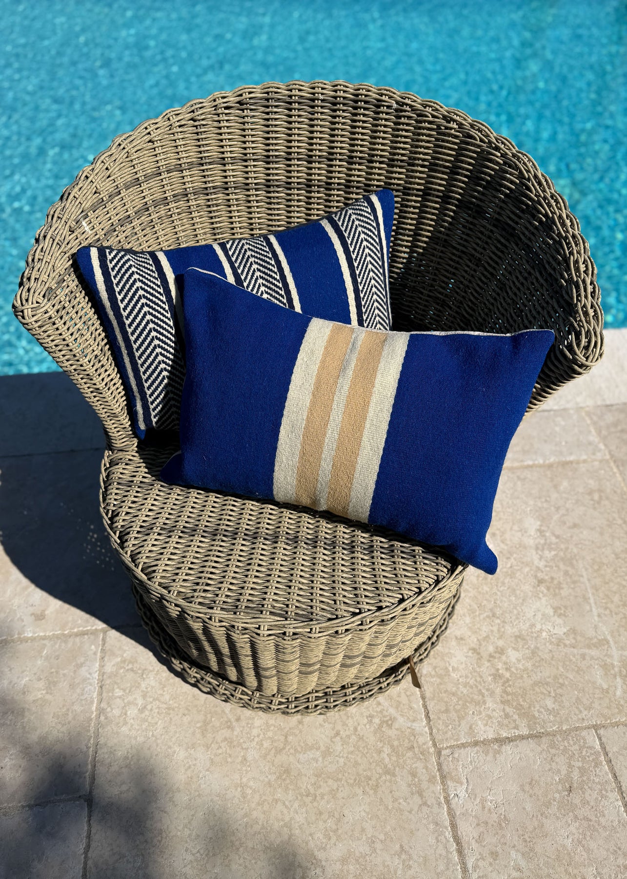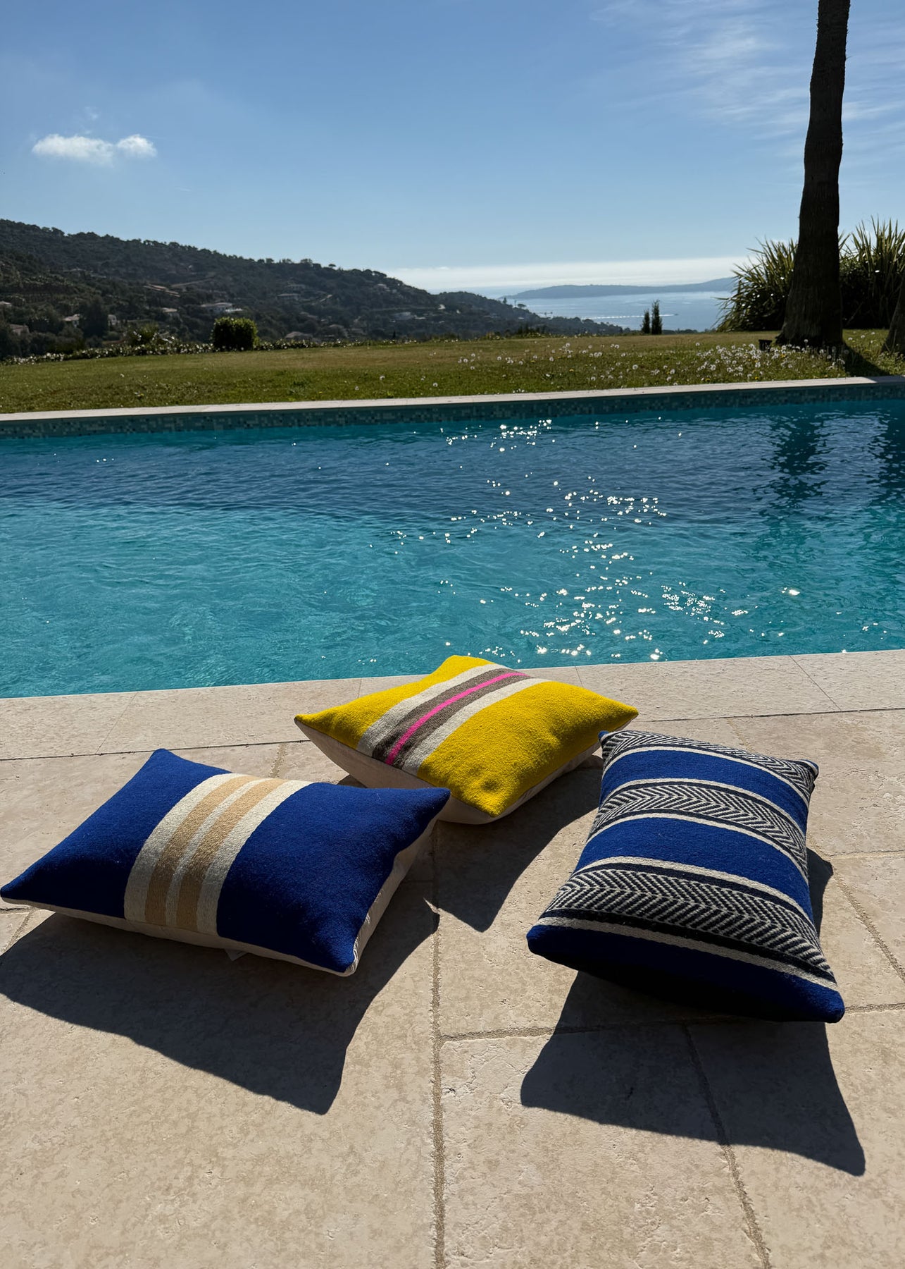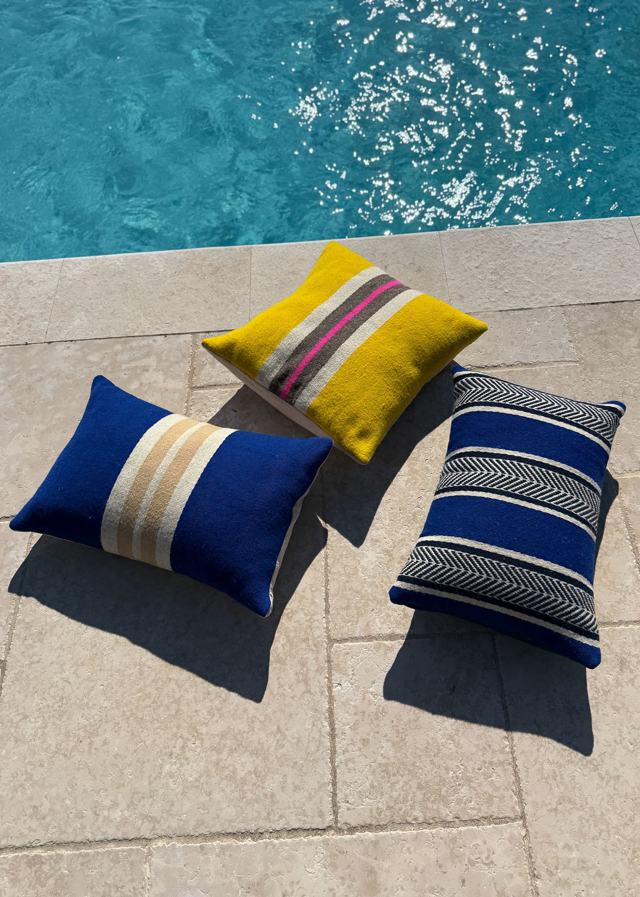 Sommerlich, bunt und handgefertigt: Dieses Kissen bringt stimmungsvolles Flair auf deine Terrasse oder ins Wohnzimmer. Jede Hülle wird aus 100 % Bio-Wolle in liebevoller Handarbeit gewebt – ein echtes Unikat! Passt perfekt zu jedem Sommer-Setup.