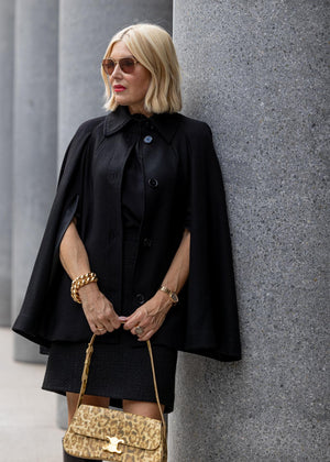 Asymmetrically cut poncho made from 100% merino wool. With a turtleneck and high-quality finish, this poncho lends timeless elegance and soothing warmth. Ideal for stylish outfits in the cold season.