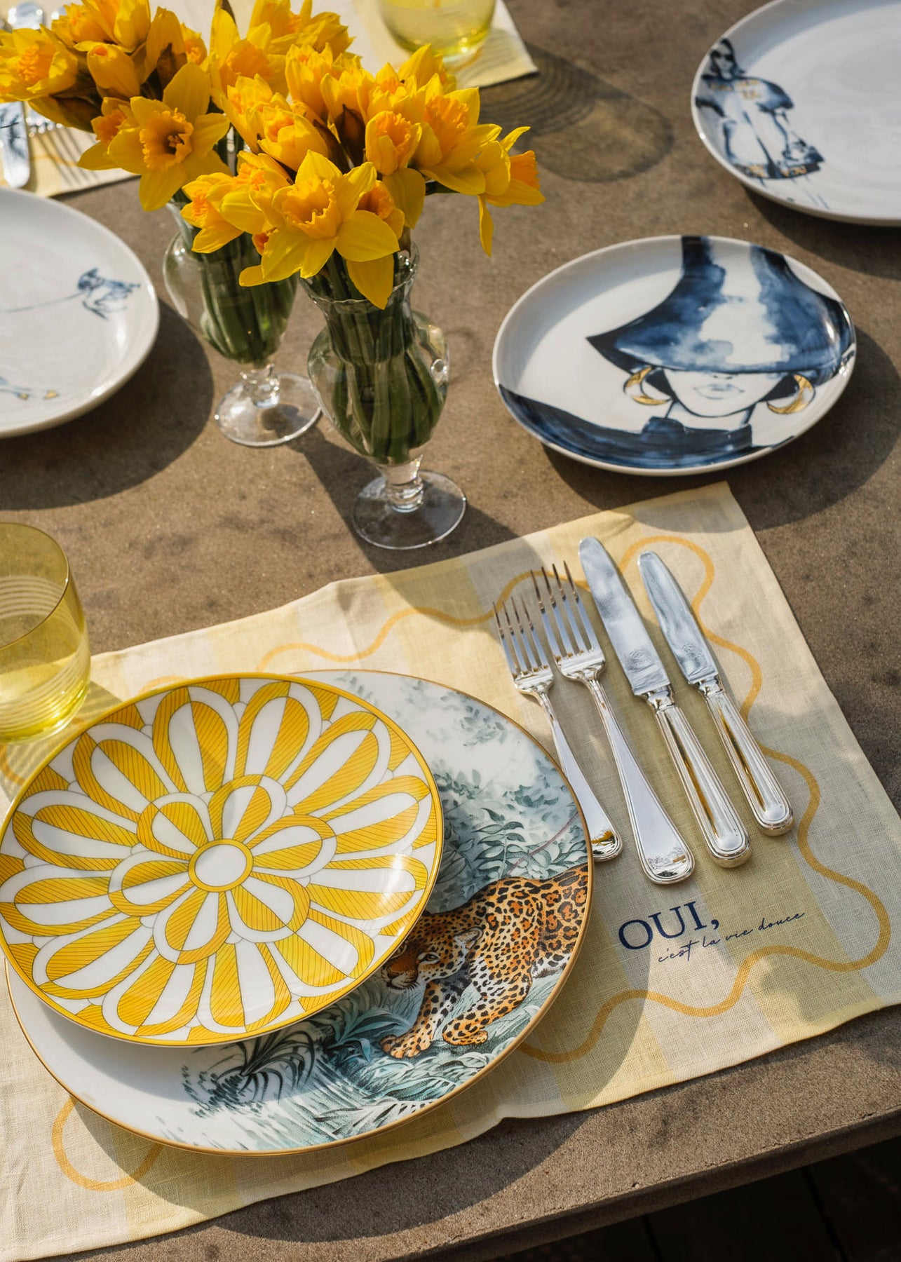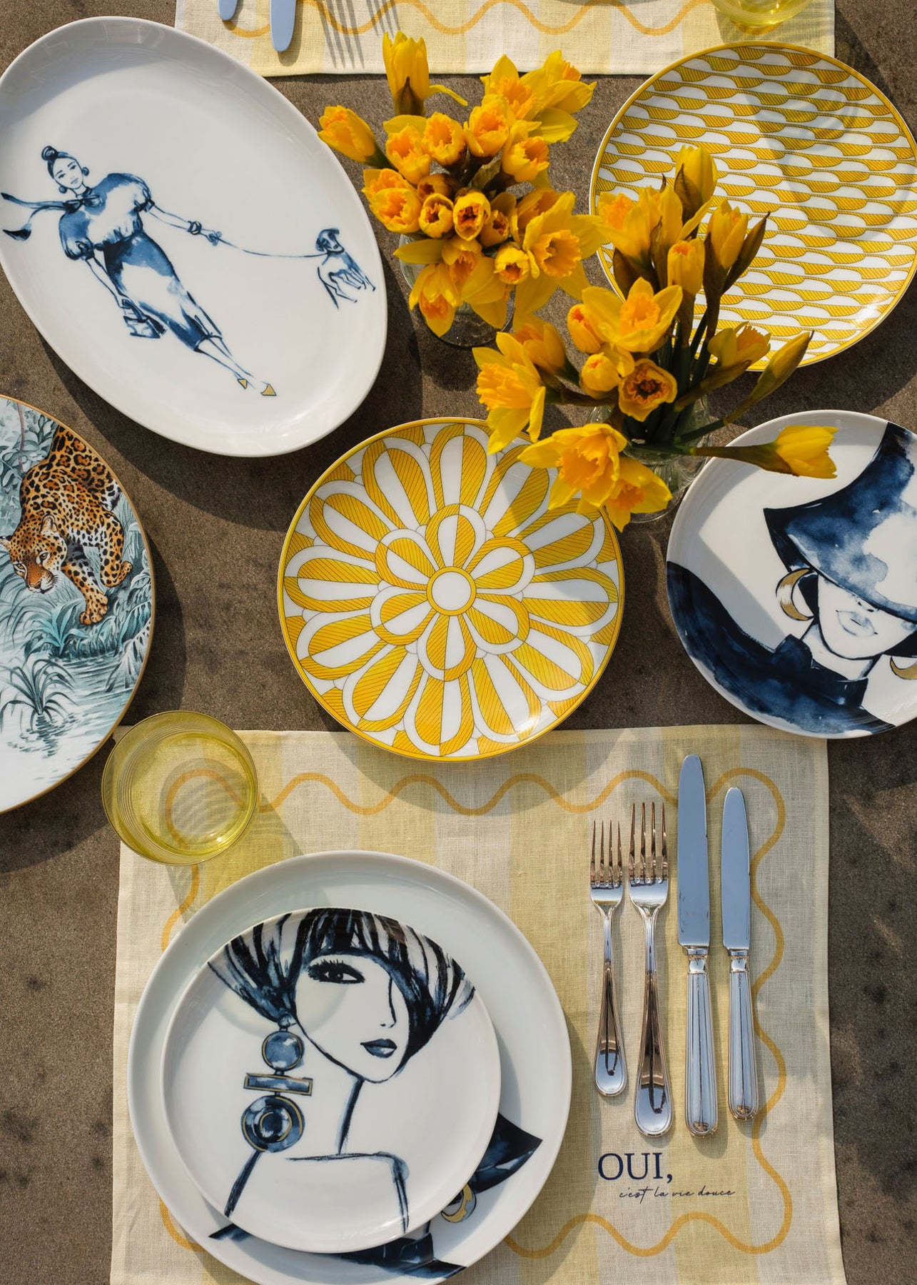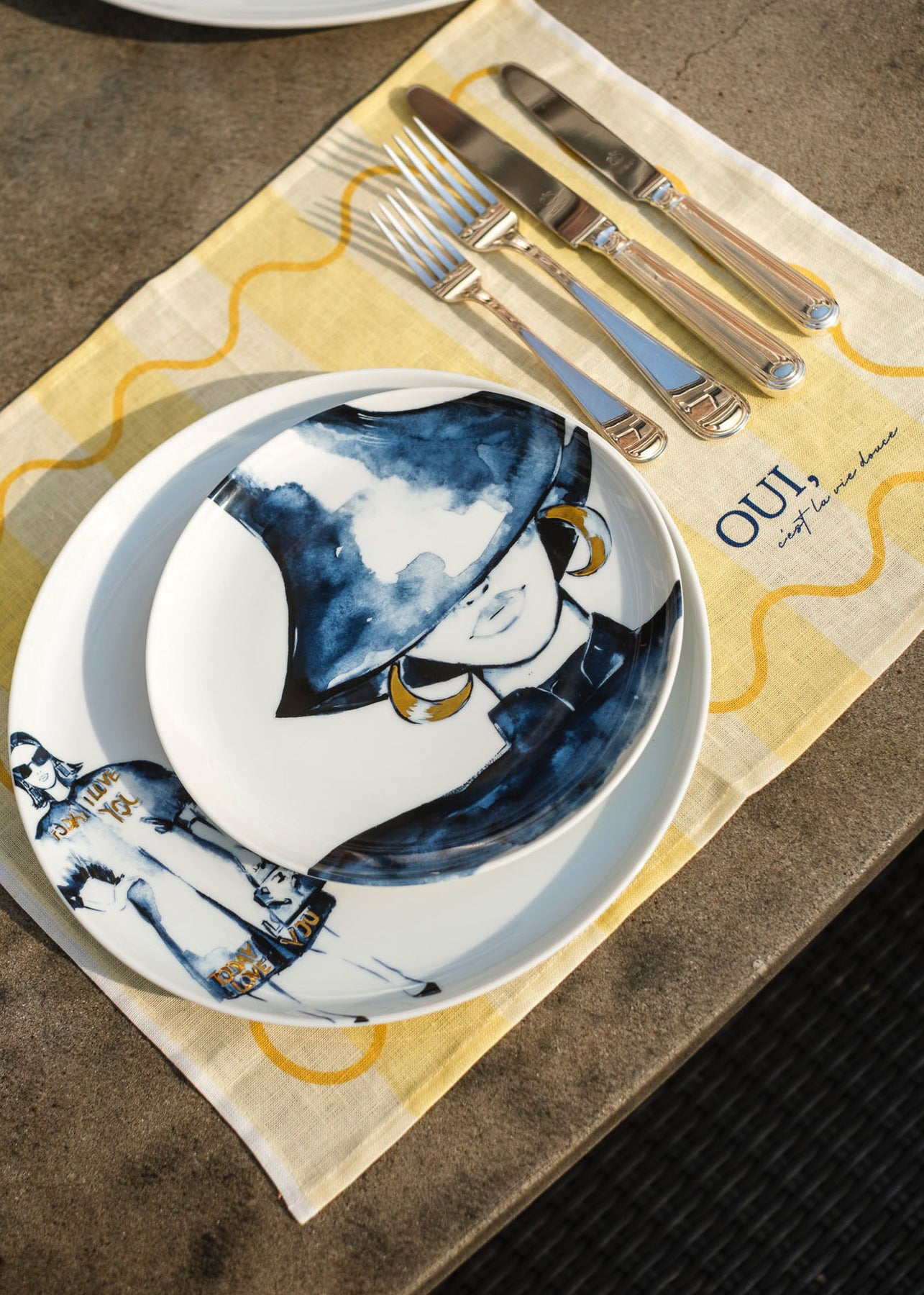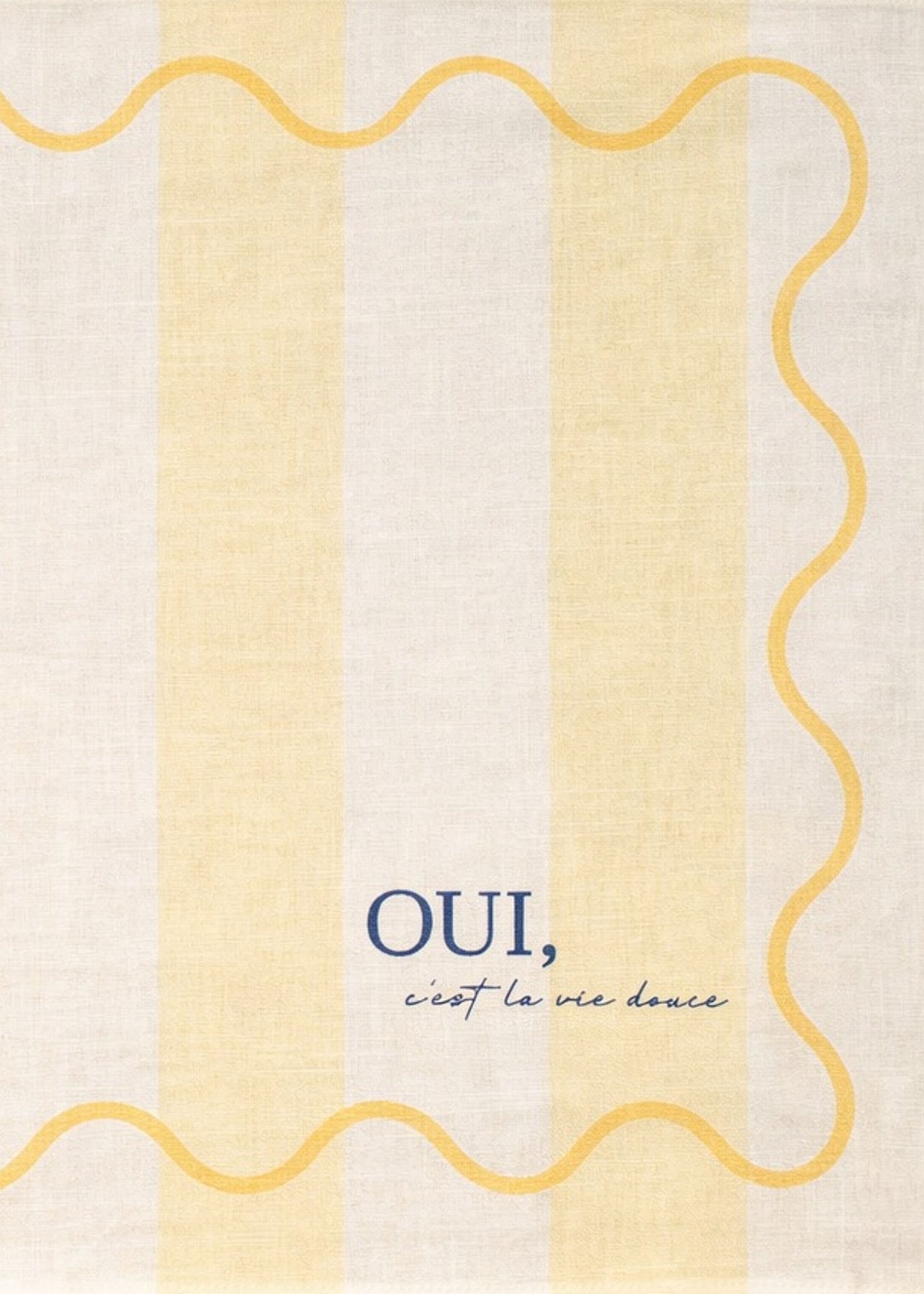 Gefertigt aus hochwertigem Premium-Leinen, kombiniert es die Leichtigkeit des Sommers mit einem modernen Design. Der sinnliche, französische Schriftzug „Oui, c’est la vie, douce“ („Ja, das Leben ist süß.“)macht dieses Tischset zu einem stilvollen Highlight für jede Tafel.