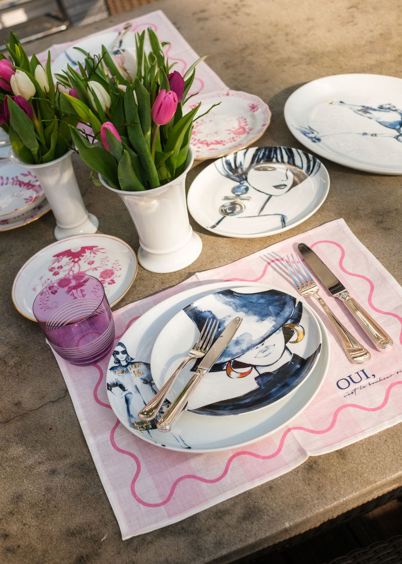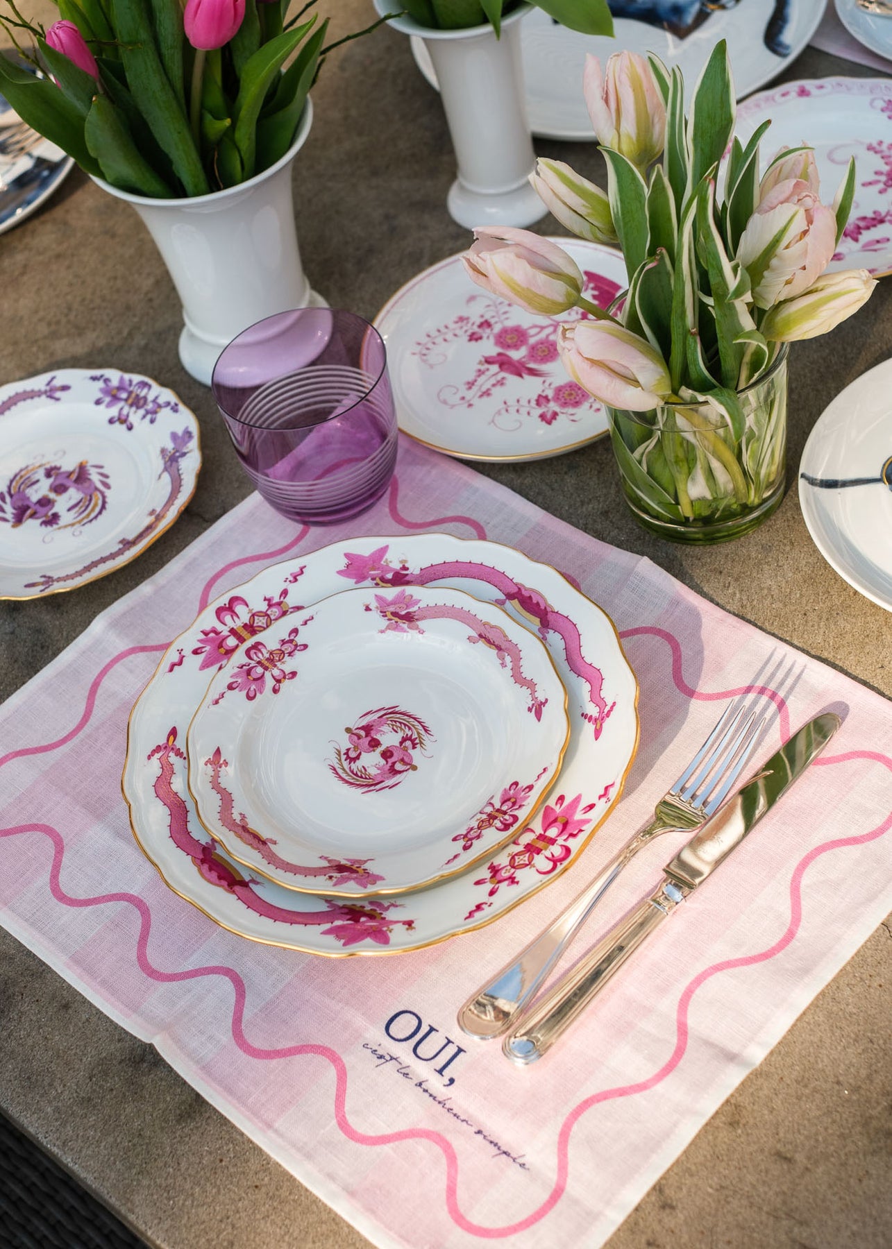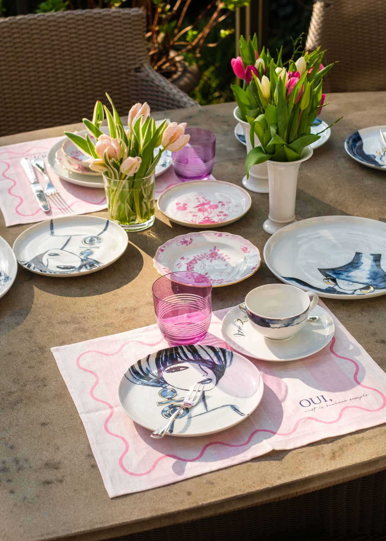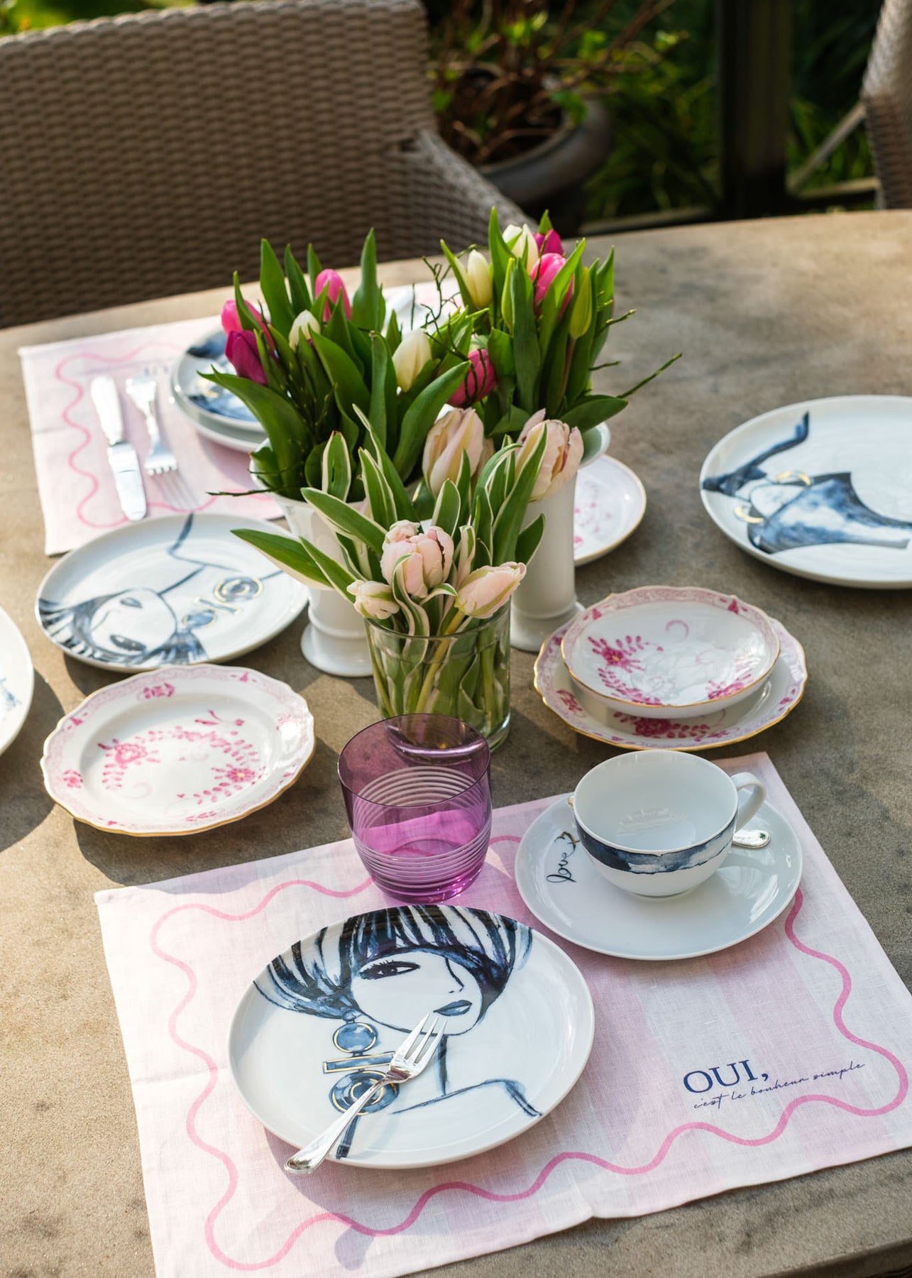 Gefertigt aus hochwertigem Premium-Leinen, kombiniert es die Leichtigkeit des Sommers mit einem modernen Design. Der sinnliche, französische Schriftzug „Oui, c’est le bonheur, simple.“ (Ja, Glück steckt in den kleinen Dingen“) macht dieses Tischset zu einem stilvollen Highlight für jede Tafel.