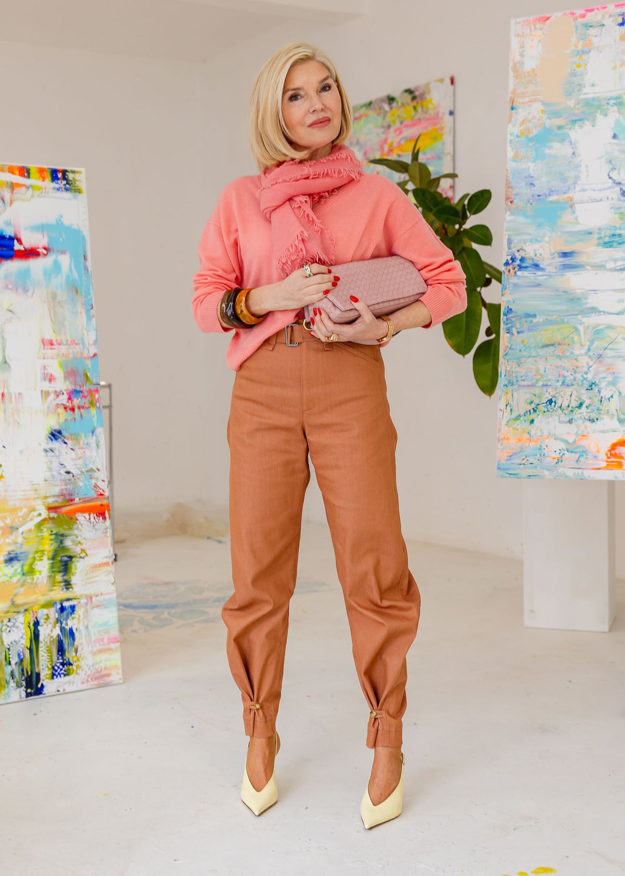 Weicher, gewebter Schal aus 100 % Cashmere mit zarten Fransen – in sommerlichem Peach setzt er stilvolle Akzente und verleiht jedem Outfit einen eleganten Touch.