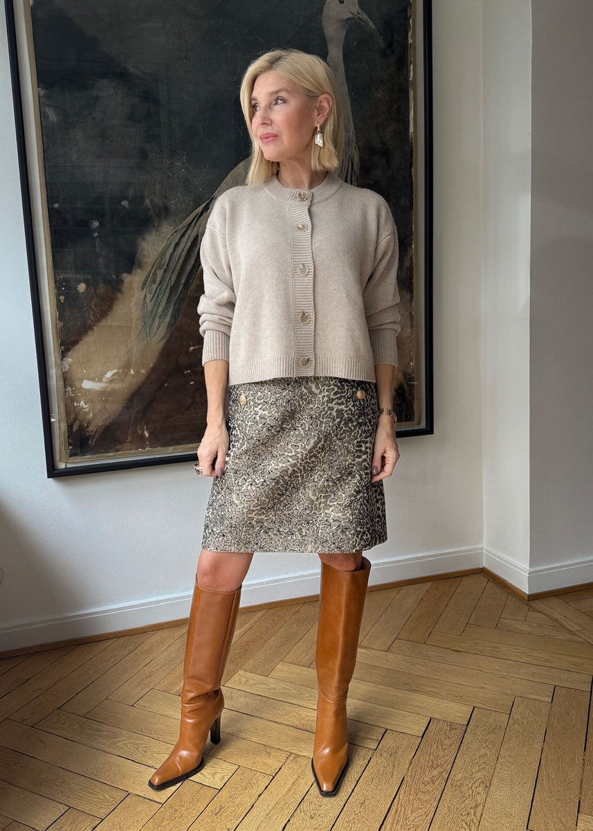 Ab heute bis einschließlich Dienstag erhaltet ihr unseren eleganten Rock im angesagten Leo-Jacquard mit 20 % Preisnachlass.