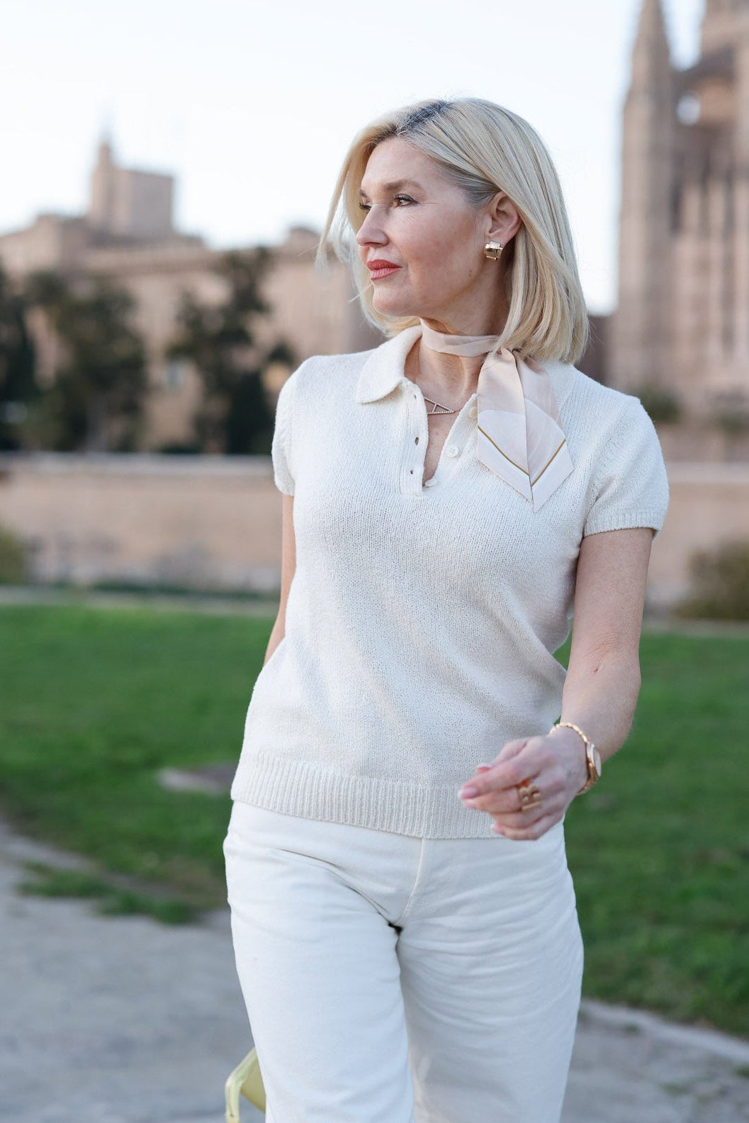 Dieses kurzärmelige Poloshirt mit klassischer Knopfleiste besticht durch eine klare Silhouette und hochwertigen Tragekomfort. Die Farbe Panna verleiht dem Design eine ruhige, moderne Eleganz und macht es zu einem vielseitigen Essential für stilvolle Looks.